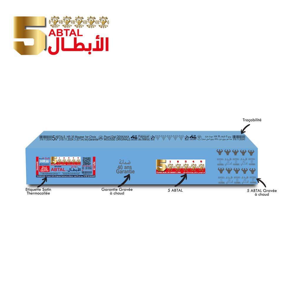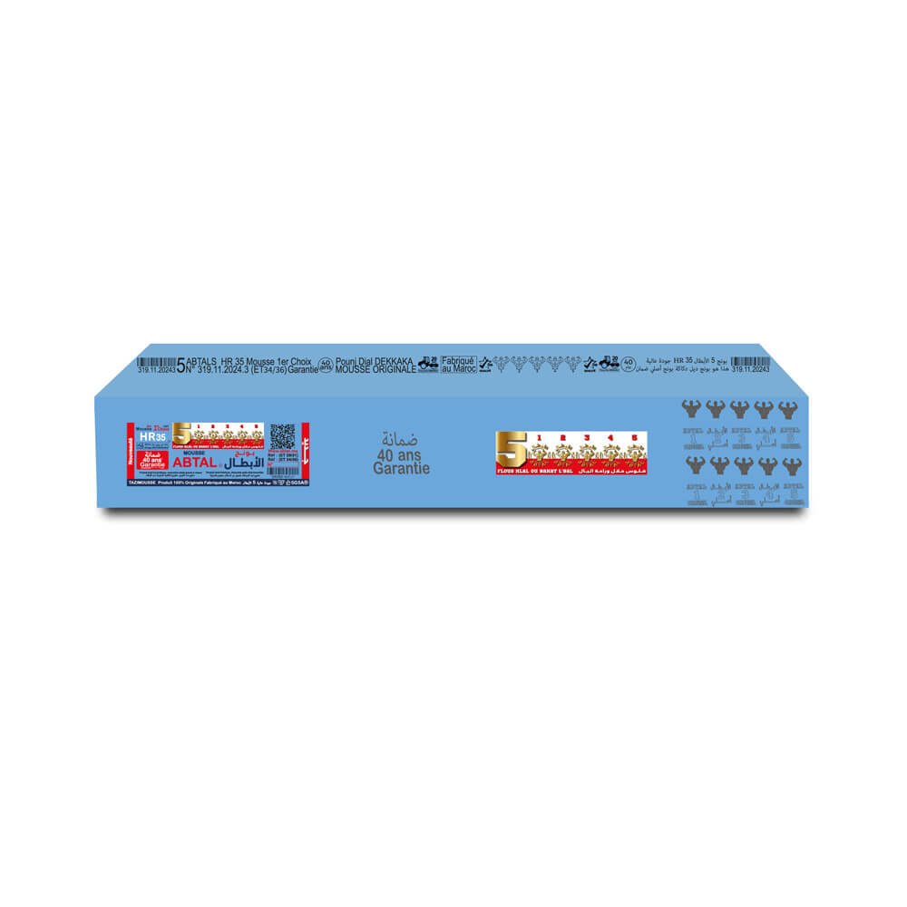 Avec une garantie exceptionnelle de 40 ans, la mousse 100% HR 35 est conçue pour durer. Cette longévité témoigne de l’engagement d’Abtal Matelas envers la qualité et la résistance de ses produits, vous offrant ainsi un investissement sûr et durable.
